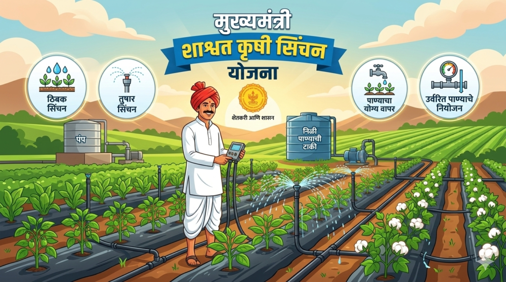 महाराष्ट्रातील कोरडवाहू शेतीला स्थैर्य देण्यासाठी मुख्यमंत्री शाश्वत कृषी सिंचन योजना ही अत्यंत महत्वाची योजना आहे. या योजनेमुळे शेतकऱ्यांना सिंचन सुविधा, आधुनिक शेती तंत्रज्ञान आणि आर्थिक मदत मिळते.